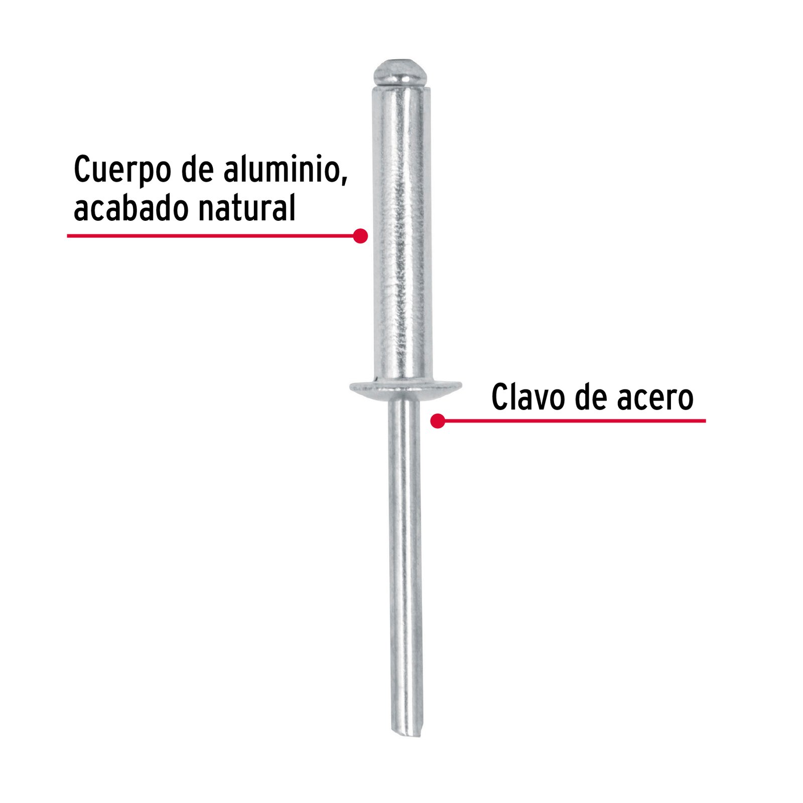 Bolsa con 50 remaches 3/16″ x 5/8″ de aluminio, ala 3/8″ 44535
